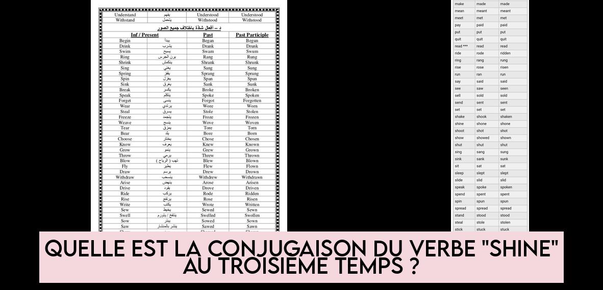 in E-commerceQuelle est la conjugaison du verbe « shine » au troisième temps ?